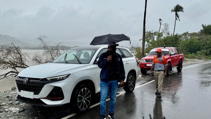 Maimón, Puerto Plata. – Tras las intensas lluvias registradas la noche anterior, el alcalde distrital Divison Manuel Sánchez Silverio realizó un recorrido junto a los Bomberos y la Defensa Civil por sectores vulnerables del distrito, los cuales han sido afectados por desbordamientos de ríos y cañadas.