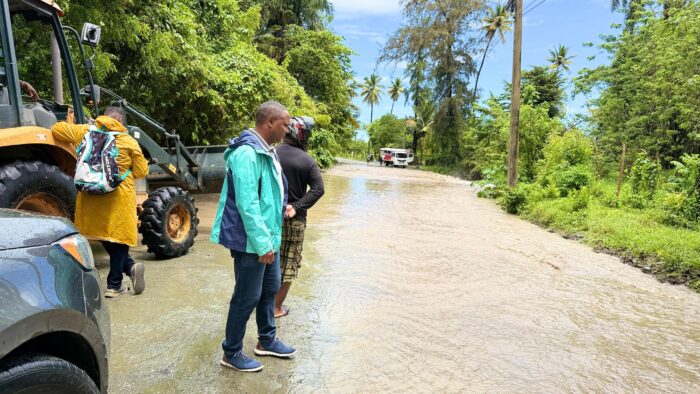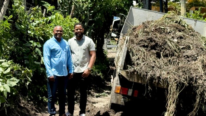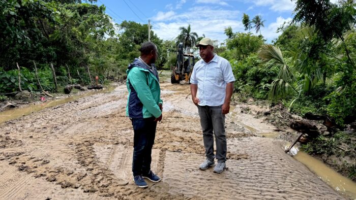 Maimón, Puerto Plata. El alcalde Divison Manuel Sánchez Silverio da respuesta inmediata a los sectores afectados por inundaciones en la parte oeste del distrito municipal, tras las recientes lluvias, contando además con el acompañamiento del vocal Juan Alexander Crisóstomo.