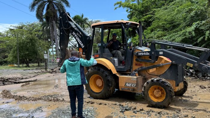Maimón, Puerto Plata. – Ante las recientes lluvias registradas en el distrito, la Junta Distrital de Maimón, encabezada por el alcalde Divison Manuel Sánchez Silverio, realiza la habilitación de calle en el sector Don Gregorio, así como la limpieza de una cañada, con el objetivo de restablecer el acceso y prevenir situaciones que puedan afectar a las familias de la comunidad.
