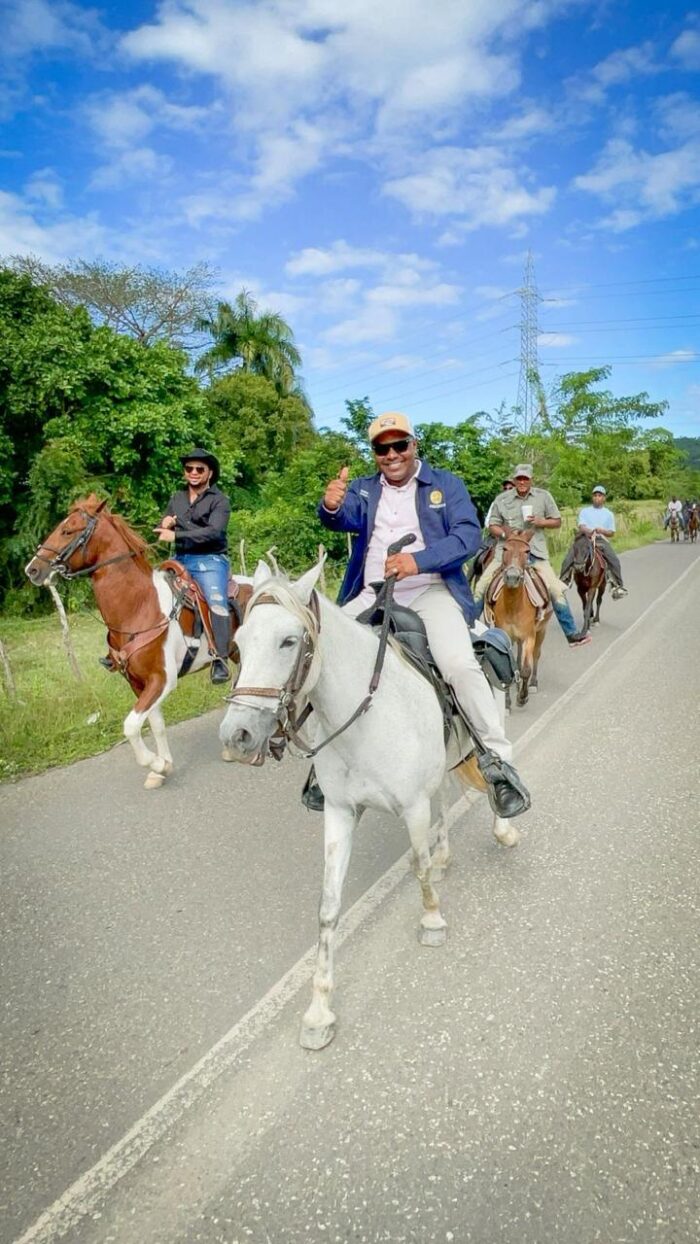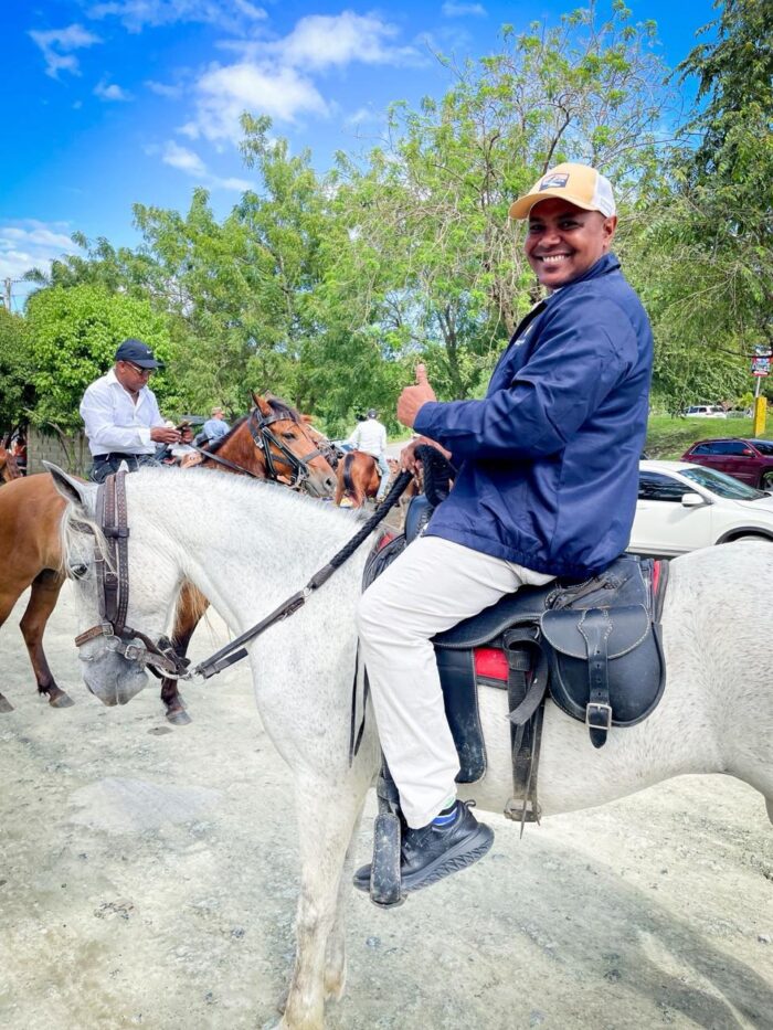 Maimón, Puerto Plata. El alcalde distrital Divison Sánchez formó parte de la primera Cabalgata Ecológica Costera realizada en el distrito municipal de Maimón, expresando su agradecimiento a Jhon Cid (el síndico de la Guaita) por la invitación y el reconocimiento, y resaltando una jornada que reunió a decenas de participantes en un ambiente de entusiasmo, unión y celebración de las tradiciones locales.