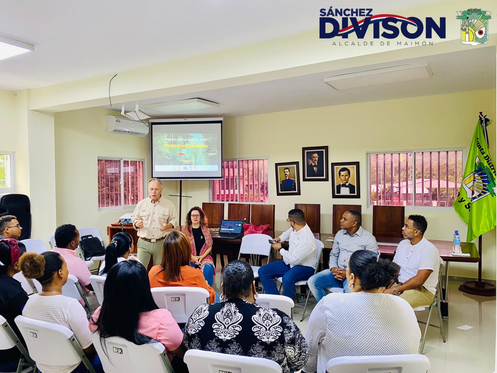 Maimón, 14 de agosto–Taller de sensibilización ambiental «Nuestra Huella Ecológica» actividad de capacitación del Proyecto Maimón Basura Cero exclusiva para el personal de la Junta Distrital liderados por su alcalde Divison Sánchez.